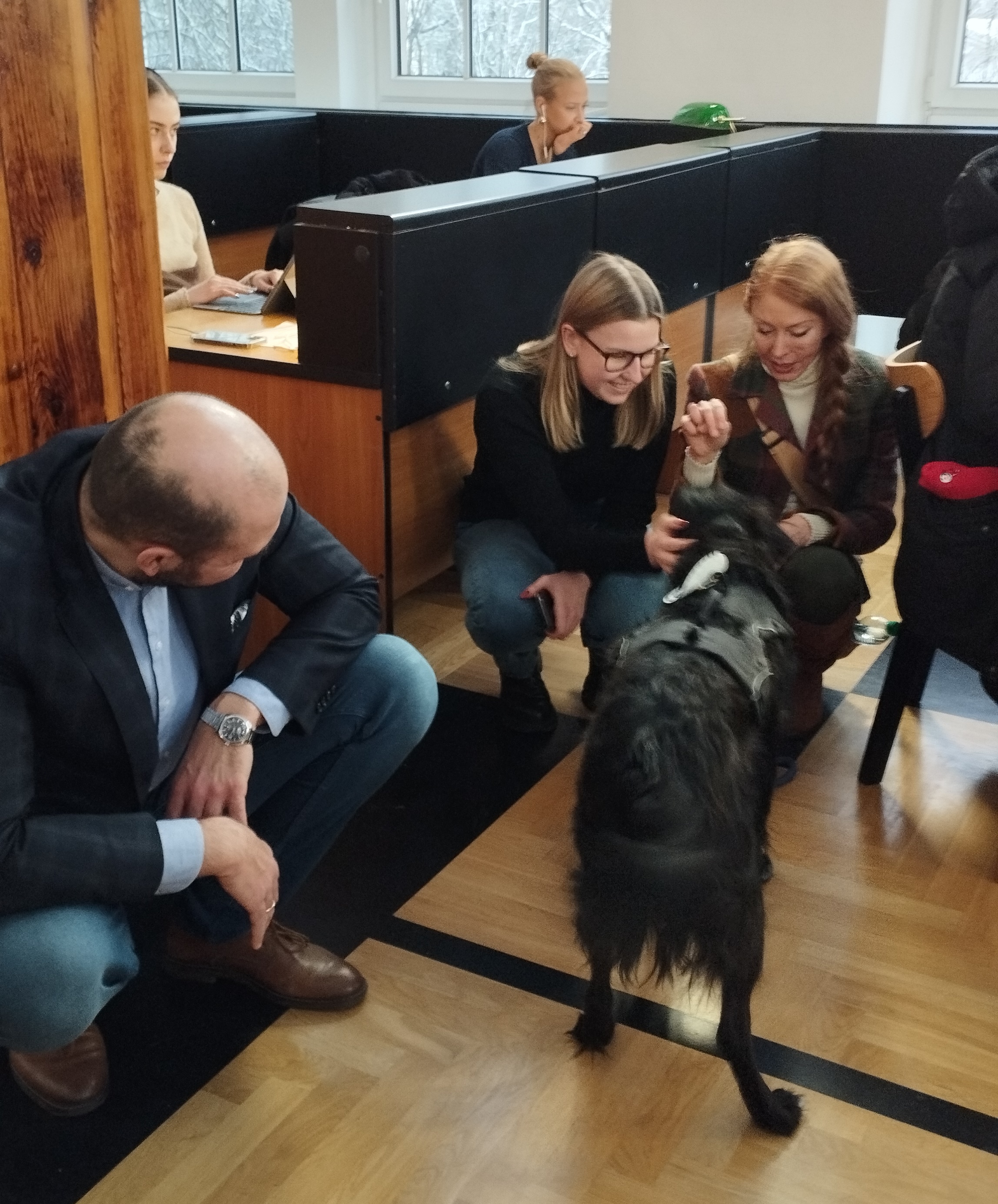 Spotkało się ono z bardzo ciepłym przyjęciem ze strony uczestników (studentów i opiekunów). Collin wraz z grupą wolontariuszy w obecności V-ce Rektora ds. dydaktyki i studentów Pana Krzysztofa Kozłowskiego, odwiedził bibliotekę SGH dając im chwilę relaksu i wytchnienia w nauce i przygotowaniu do egzaminów. Odbyły się też 2 spotkania i nawiązanie do roli psa, podczas wykładów u P Prof. Hanny Godlewskiej Majkowskiej.
